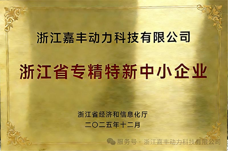 Recientemente,Zhejiang Jiafeng Power Technology Co., Ltd.(en adelante, "Jiafeng Power") recibió noticias interesantes. Gracias a su destacado desempeño en especialización profesional e innovación tecnológica, la empresa pasó con éxito la revisión y recibió el título de Pequeña y Mediana Empresa "Especializada, Refinada e Innovadora" en la provincia de Zhejiang.